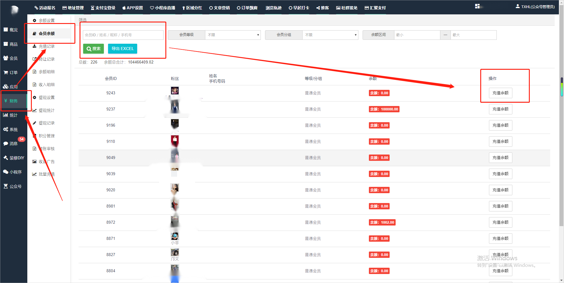 目录 搜索 展开 一、前期准备资料二、数字乡村码-上线操作指南1、服务号的申请流程及认证2、申请小程序流程3、开放平台绑定小程序和公众号三、数字乡村码-系统操作数字乡村码系统管理-概况数字乡村码-商品管理1、发布商品2、商品列表3、商品表单4、商品分类5、品牌管理6、配送模板7、评论管理8、优惠券管理9、商品标签10、退货地址设置11、满额优惠12、批量操作13、配送方式14、基础设置15、商品隐藏四、数字乡村码-会员管理1、全部会员2、会员等级3、会员分组4、资格申请5、会员设置6、推广中心设置7、会员邀请码8、会员关系链修改关系链修改记录9、会员合并记录10、账号注销管理11、会员设置中心五、数字乡村码-订单管理1、订单管理列表2、订单处理流程3、订单状态4、订单修改价格5、订单退款退货6、多包裹发货7、批量发货订单操作步骤8、催发货订单9、物流查询六、数字乡村码-财务管理1、余额设置2、会员余额3、充值记录4、转让记录5、余额明细6、收入明细7、提现设置8、提现统计9、积分管理10、转账审核11、收益广告12、批量充值七、数字乡村码-系统管理1、商城入口2、商城设置①、商城设置②、订单设置③、物流查询④、短信⑤、联系方式⑥、分类⑦、优惠券⑧、分享⑨、幻灯片⑩、广告位⑫、地图设置3、交易设置4、微信模板消息自定义消息模板(新版)自定义消息模板(旧版)小程序消息模板公众号模板消息变更公告5、语言设置6、权限管理7、多媒体管理八、数字乡村码-消息管理九、数字乡村码-应用管理十、数字乡村码系统-数据统计十一、数字乡村码-页面装修DIY1、模板管理2、店铺页面3、顶部导航4、底部导航5、DIY模板市场6、首屏广告7、基础设置8、装修DIY尺寸建议十二、供应商功能插件操作指南1、供应商2、门店-收银台门店申请和使用步骤门店管理①、门店-收银台 营销设置②、门店-收银台 分润设置门店分类门店申请门店审核门店商品门店商品订单收银台订单数据统计核销员基础设置默认设置门店装修3、微社区4、会务活动十三、营销插件操作指南活动报名提货卡新人奖微店问卷调查积分视频分享1、视频分享基础设置2、视频分享发现管理3、视频分享分类管理4、视频分享评论管理5、视频分享分红记录6、视频分享短视频中心每日红包幸运大抽奖签到优惠券二维码任务奖励优惠劵文章音频文章付费文章限时购新海报拓客卡操作流程积分活动素材中心视频红包十四、入驻门店应用类1、门店预约2、附近商品3、门店定位设置4、门店控制5、门店满额包邮6、门店满额减7、导入商品8、门店搜索9、门店股东10、核销券11、多门店核销1、商城后台设置2、前端功能演示十五、常见问题1、后台登录密码修改流程2、会员-余额,积分,后台如何进行充值与扣除3、如何修改上下级关系4、一种万能的获取商城小程序路径的方法 暂无相关搜索结果! 阅读次数:1706 本文档使用 模王系统 发布 2、会员-余额,积分,后台如何进行充值与扣除 会员-余额,积分,后台如何进行充值与扣除一.如何进行余额充值-扣除1.财务-会员余额-搜索会员昵称-右边点击充值余额2.扣除余额,只需要在充值金额前加上 - 号;比如充值-100,等于扣除100余额二,如何手动充值积分-扣除积分(充值与扣除逻辑跟余额是一样的)文档更新时间: 2024-01-05 14:28 作者:链上旅行